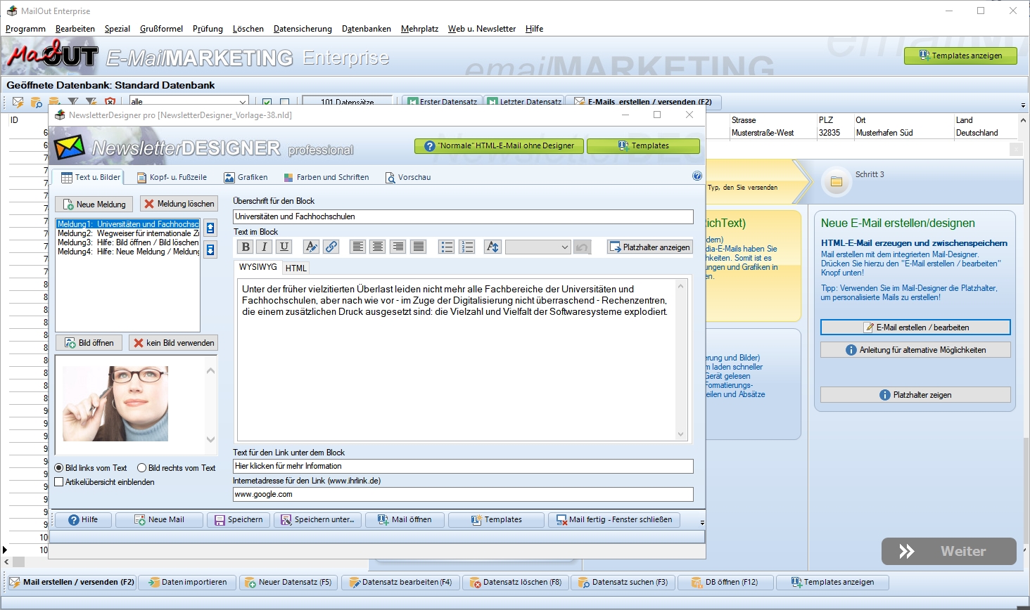 Klare Strukturen in der Software helfen bei der Erstellung ansprechender Newsletter.